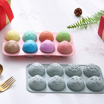 Molde de silicona redondo de Chocolate de Navidad HY 8 cavidades árbol de Navidad copo de nieve media esfera círculo caramelo bomba molde