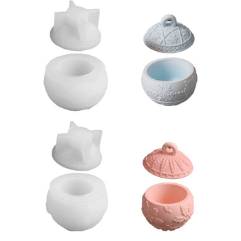 HY Christmas Berry Molde Caixa De Armazenamento Com Tampa Silicone Snowflake Xmas Round Ball Candle Jar Resin Mold